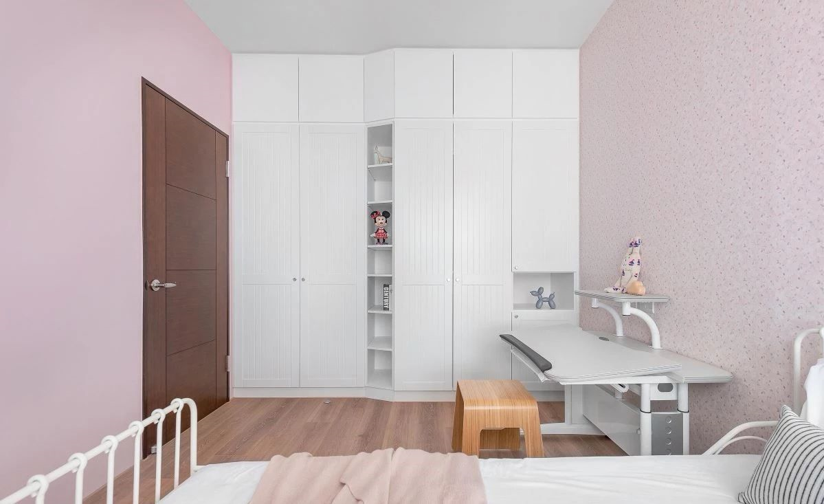 客廳里沒(méi)有設(shè)置笨重的茶幾,藍(lán)灰色的布藝沙發(fā)帶點(diǎn)文藝風(fēng),淺灰色的地毯讓人感覺(jué)很溫暖。 黃色的懶人椅很休閑風(fēng),顏色比較純凈。 電視背景墻采用全木質(zhì)板,兩邊的墻面粉刷天藍(lán)色的乳膠漆,清新自由,擱板下面是白色的矮柜,收納功能很好,既美觀又做了收納。 右邊的電視背景墻上懸掛了六邊形的白色收納,比較有趣,木質(zhì)的底色與電視背景墻相呼應(yīng)。 灰色的時(shí)鐘很獨(dú)特很有個(gè)性,利用時(shí)鐘的邊角形狀來(lái)確定時(shí)鐘的刻度,木質(zhì)擱板上可以放一些收納或者小盆栽,會(huì)起到不一樣的裝飾作用。 餐廳 粉色的圓形吊燈讓整個(gè)空間都變得可愛(ài)起來(lái),淡藍(lán)色的背景墻,溫潤(rùn)質(zhì)感的文化磚墻面,淡灰粉的收納柜門(mén),原木色的餐桌椅,很小清新。 主臥 北歐風(fēng)就不是沉甸甸的感覺(jué),一定是這種相對(duì)比較明亮的色調(diào),空間都會(huì)比較純凈,尤其是墻面的裝飾,一般都是純顏色,不會(huì)有圖案的修飾。 在臥室設(shè)計(jì)電視,也是為了方便業(yè)主在睡覺(jué)前休閑放松一下,白色的衣柜門(mén)與墻壁融為一體,推拉門(mén)不會(huì)占據(jù)太多的空間。 飄窗處有一個(gè)麻編的衣物籃,有時(shí)候穿過(guò)的衣服,來(lái)不及洗,可以先放在這個(gè)籃子里面,第二天再洗。 次臥 次臥的床頭背景墻有一種水面上的波光粼粼的感覺(jué),白色的鐵藝床是北歐風(fēng)的標(biāo)志,簡(jiǎn)約時(shí)尚。 書(shū)桌設(shè)計(jì)在床的旁邊,是為了工作的隨叫隨到,學(xué)習(xí)時(shí)更方便,看書(shū)或者工作,累了就往床上一躺,休息一下。 兒童房 兒童房超粉嫩可愛(ài),偏粉色的床頭背景墻,粉色的床頭柜門(mén),和次臥一樣,有一張書(shū)桌,便于學(xué)習(xí)。 大面積的粉色墻壁真的太少女心了,小公主的房間的標(biāo)配色。 END 圖文源自網(wǎng)絡(luò),若侵權(quán)請(qǐng)聯(lián)系刪除