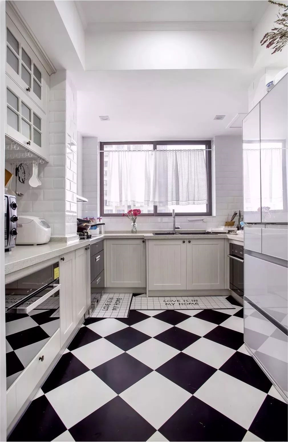 黑白相間的地磚看起來很有格調(diào),整個廚房干凈整潔,并且由于空間格局原因,看起來寬敞。