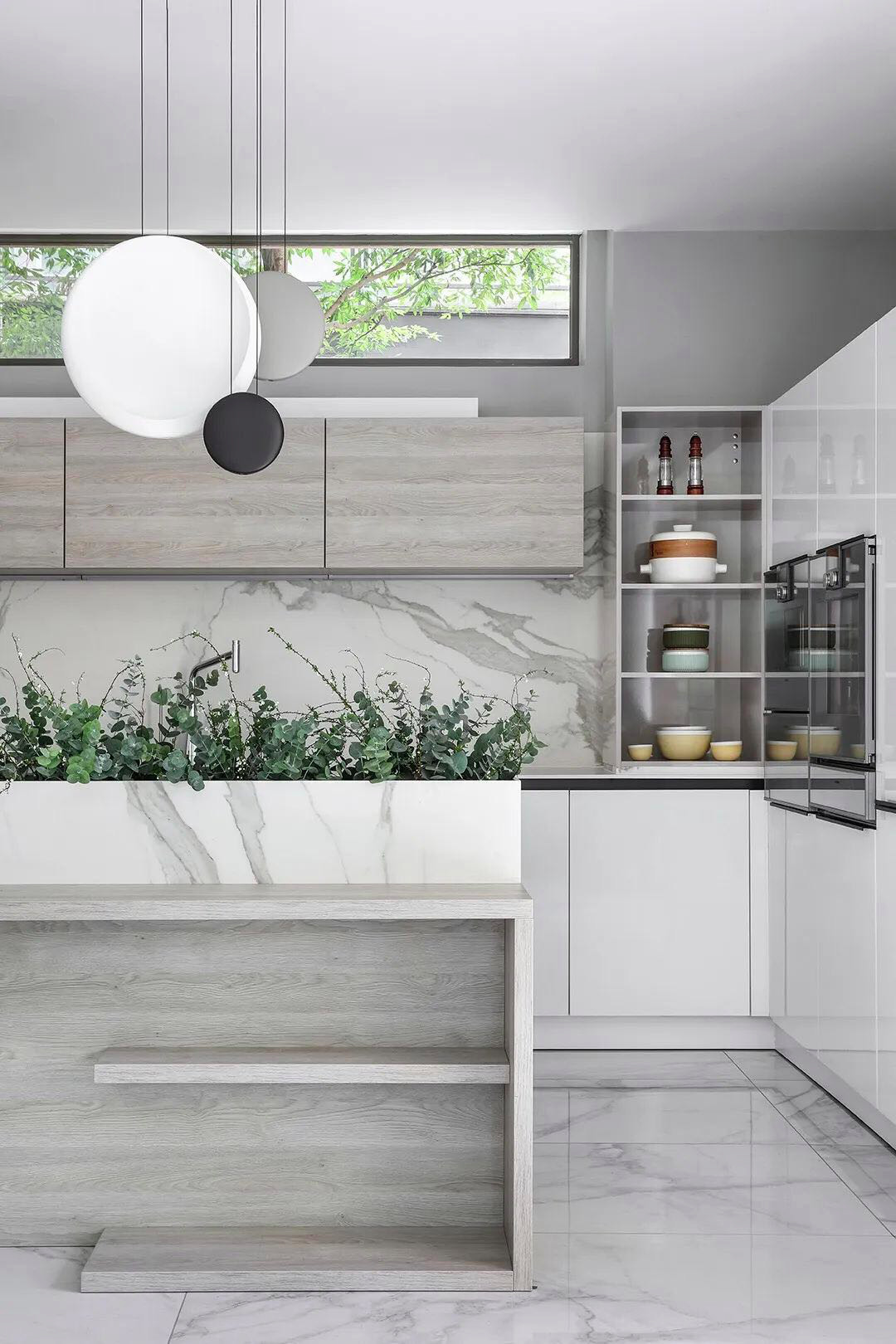 櫥柜下方、柜體里面,這些暗角最好安上燈帶,這樣你在切菜、洗菜、找東西時(shí),會(huì)更方便安全。