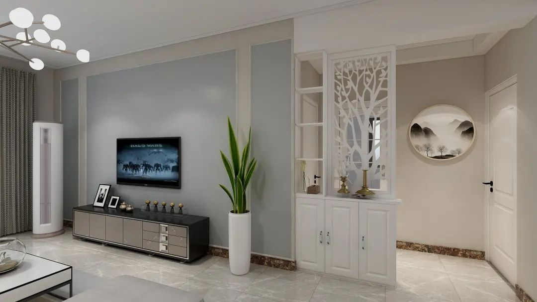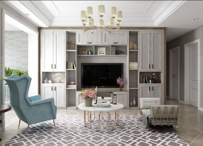 2.電視背景墻也可以結(jié)合隔板、定制柜等,增加客廳的收納空間。