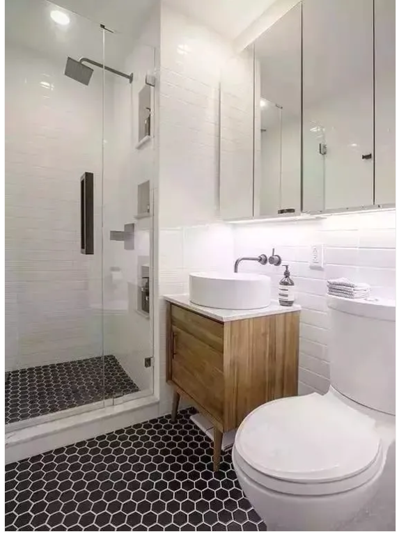 作為寸土寸金的空間,要想既保證活動面積,還想為衛(wèi)生間擴容、做好收納,最好的辦法就是利用好馬桶上方的1㎡。